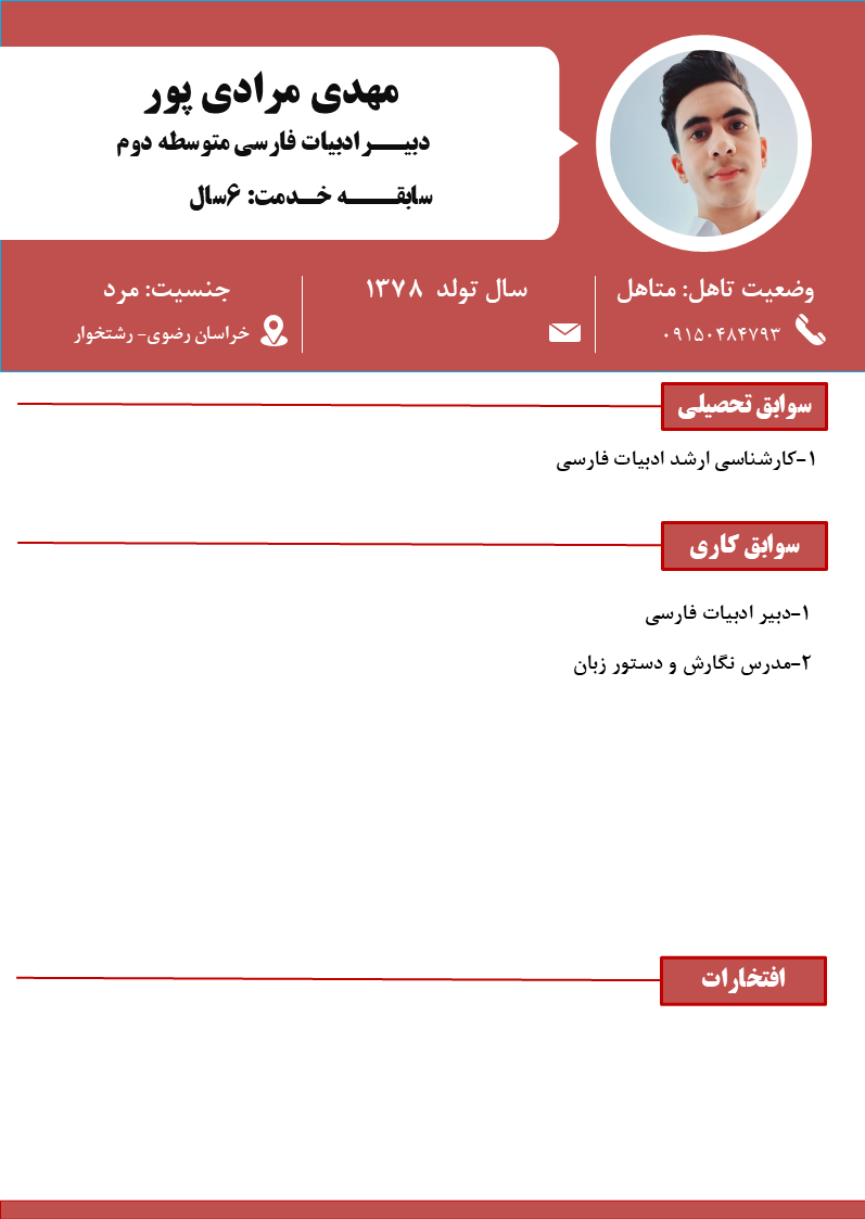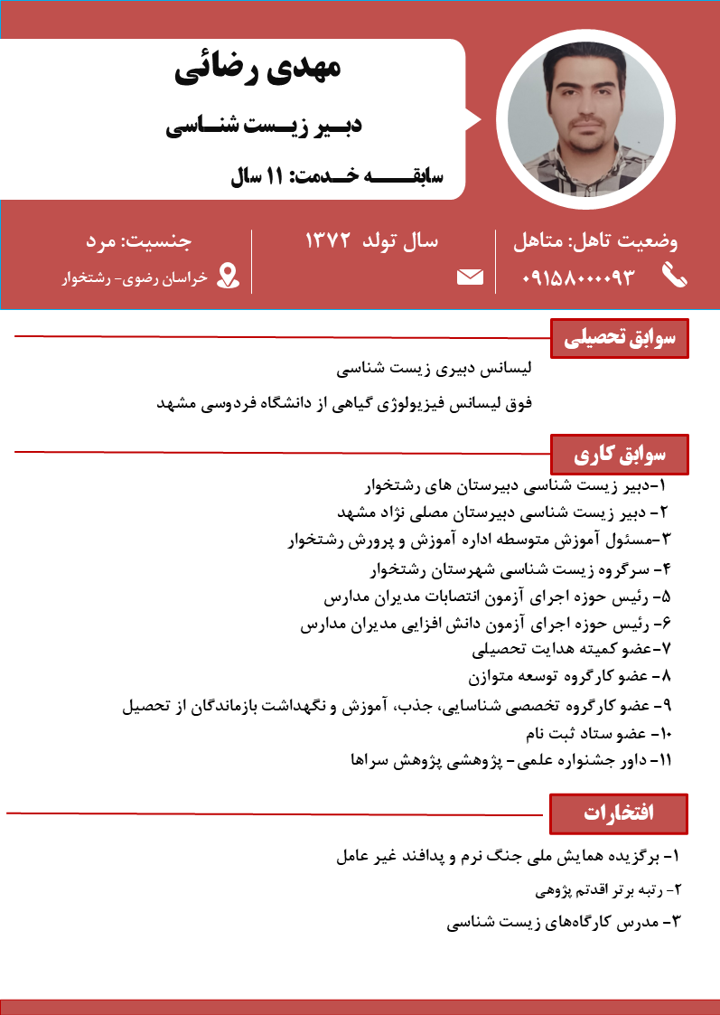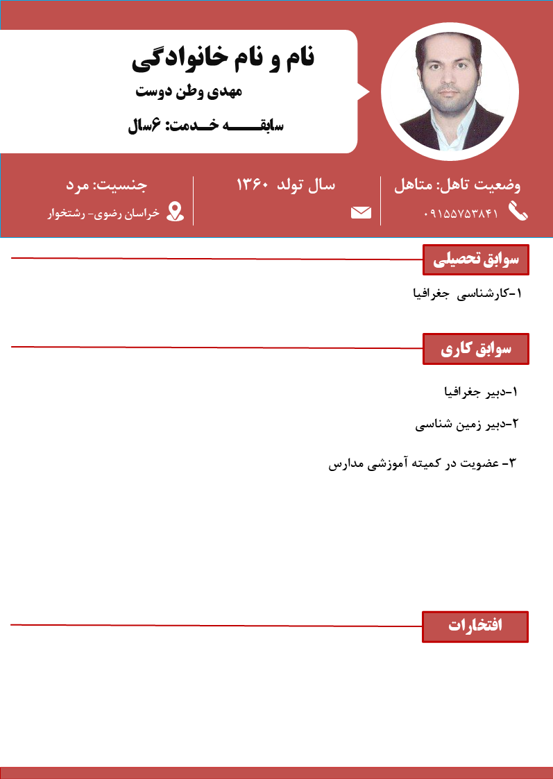 جهت آشنایی با سوابق آموزشی و تجربیات همکاران بر روی
