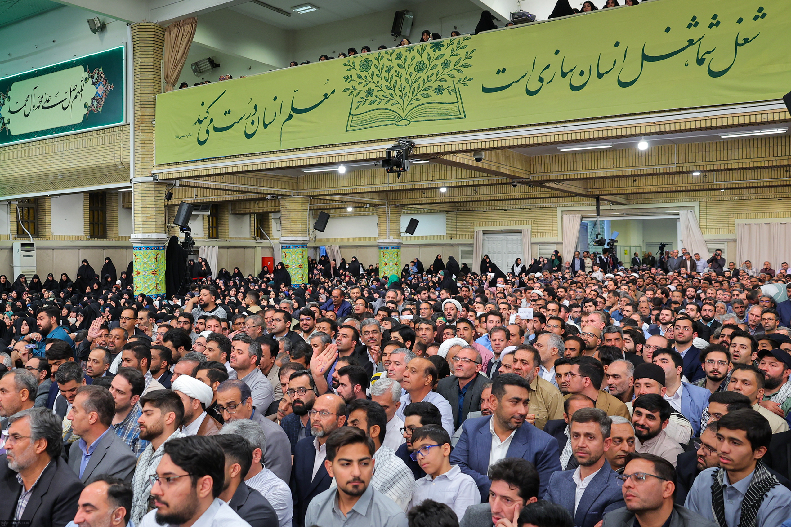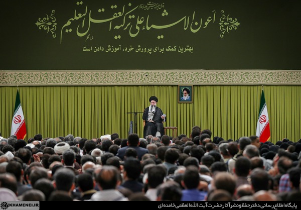 حضرت آیتالله خامنهای در ابتدای سخنان خود، هدف از این دیدار را قدردانی از معلمان و تکریم جایگاه معلم دانستند و با تأکید بر اینکه هر مقدار هزینه در بخش آموزش در واقع سرمایه گذاری برای آینده کشور است، افزودند: خوشبختانه رئیسجمهور محترم به مسائل آموزش و پرورش اهتمام ویژهای ابراز میکنند و وزیر محترم نیز از مدیران برجسته و آشنا با مسائل این دستگاه است.