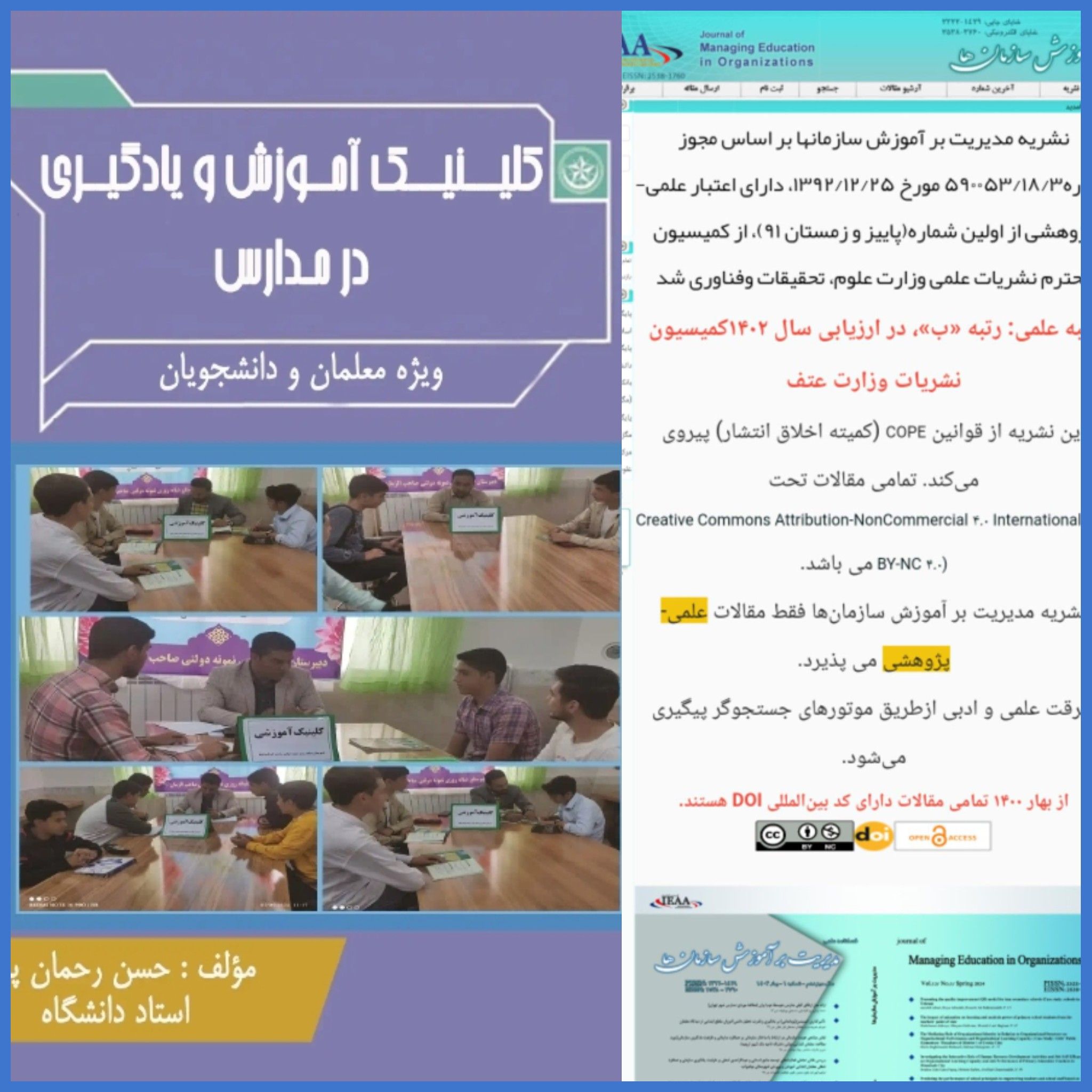 لینک مجله و مقاله چاپ شده آقای حسن رحمان پور مدیر دبیرستان در مجله مدیریت بر آموزش سازمان ها و نمایه در گوگل اسکولار