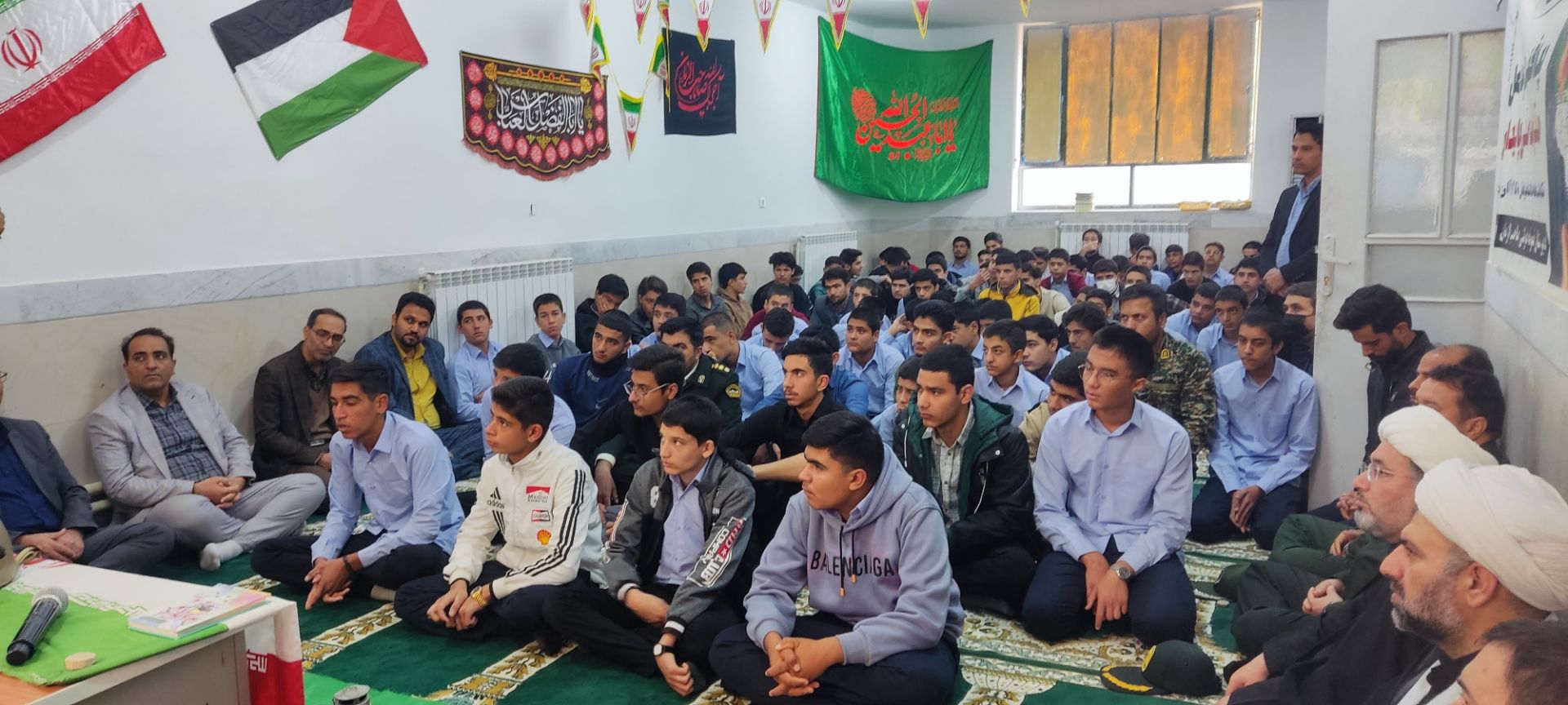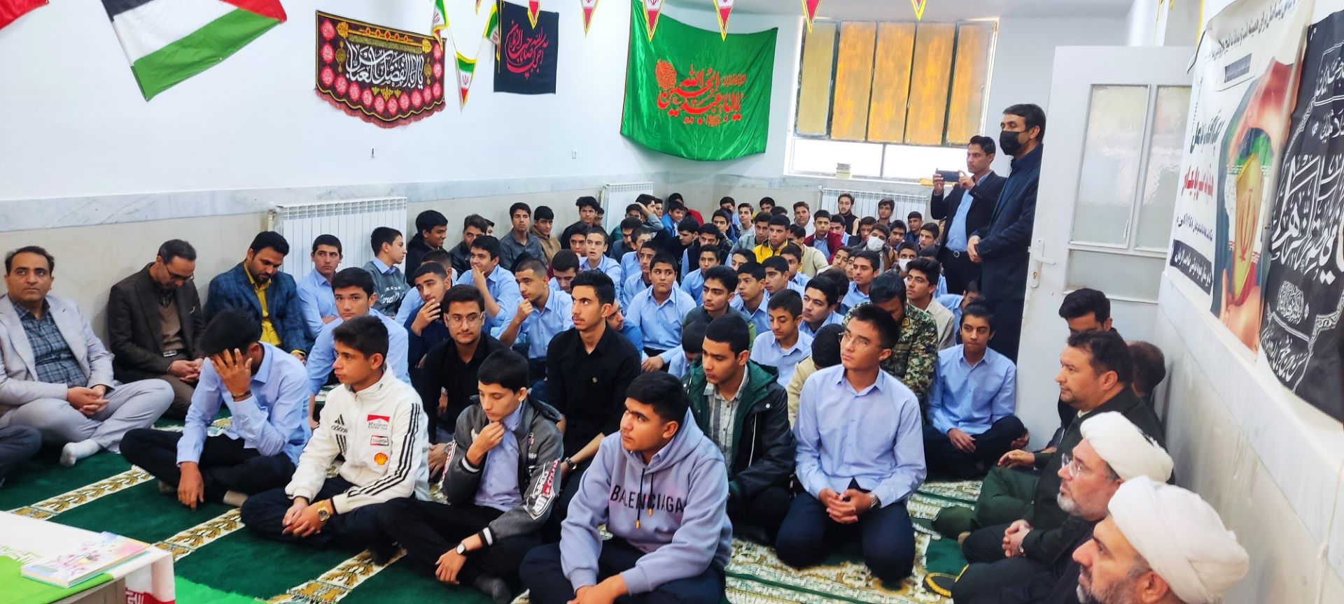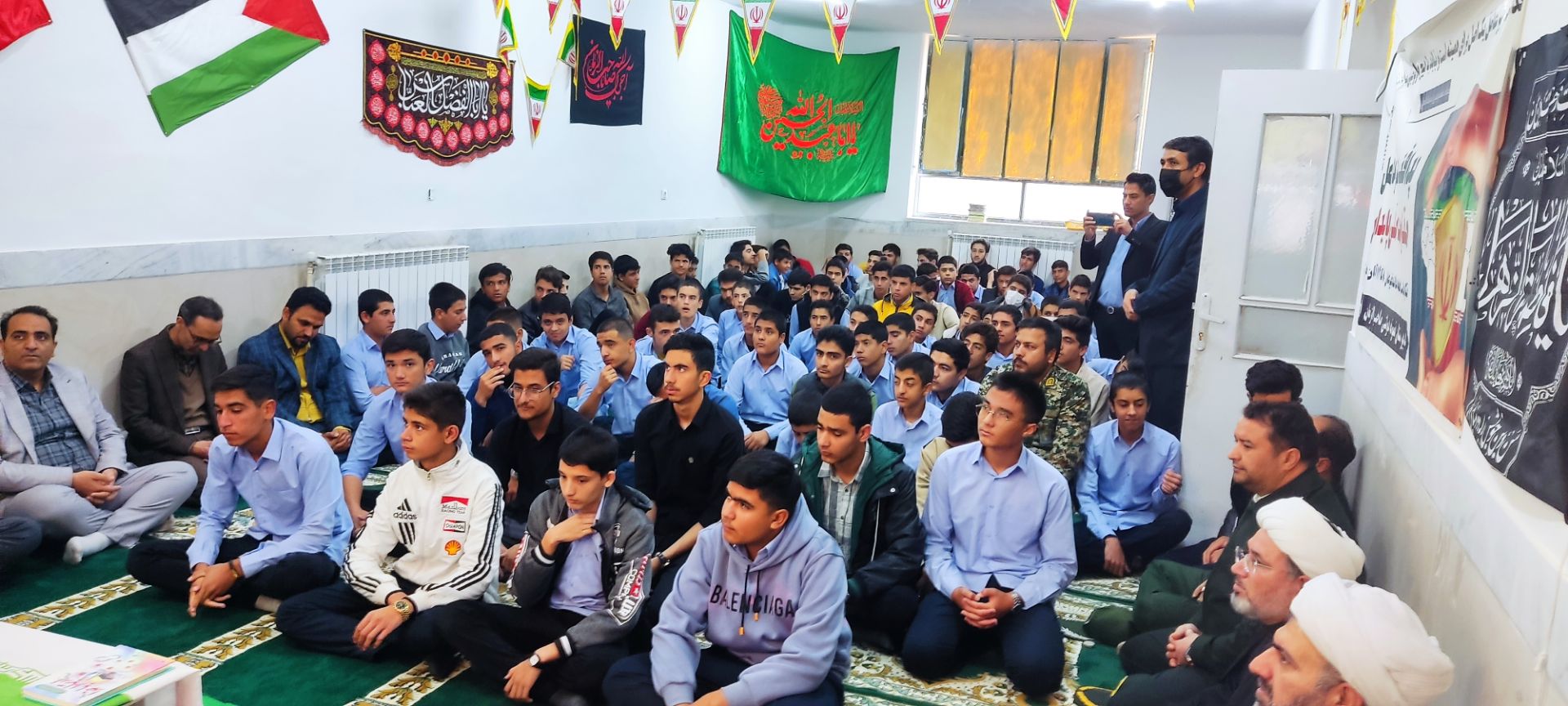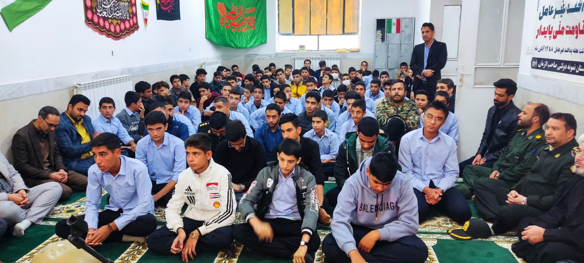 همزمان با هفته بسیج دانش آموزی و در آستانه روز دانش آموز و آغاز دهه فاطمیه ، صبح امروز قبل از شروع کلاس ها، همایش بصیرتی رهپویان ولایت با حضور امام جمعه محترم ، مدیریت محترم آموزش و پرورش، ریاست محترم دادگستری، فرماندهان محترم نظامی و انتظامی، روسای ادارات، کارکنان محترم آموزش و پرورش، رئیس دفتر نماینده شهرستان ، فرمانده بسیج دانش آموزی، همکاران و دانش آموزان قبل از شروع کلاس ها از ساعت۶تا۸صبح برگزار شد. در این مراسم ضمن خیر مقدم مدیریت دبیرستان، مسوول فرهنگی ـ عقیدتی سپاه ناحیه شهرستان به ایراد سخنرانی پرداختند و در پایان از دانش آموزان و مهمانان با صبحانه فاطمی پذیرایی شد.