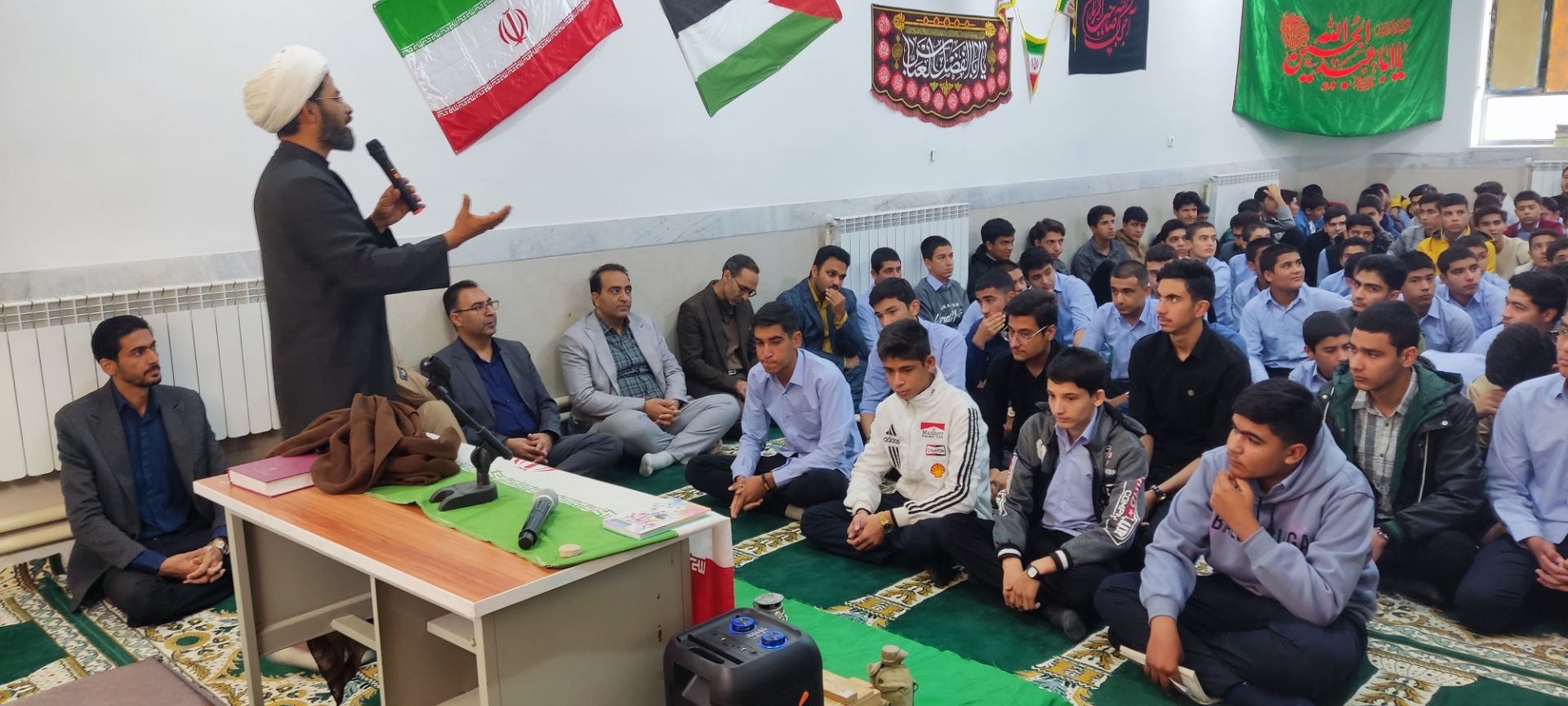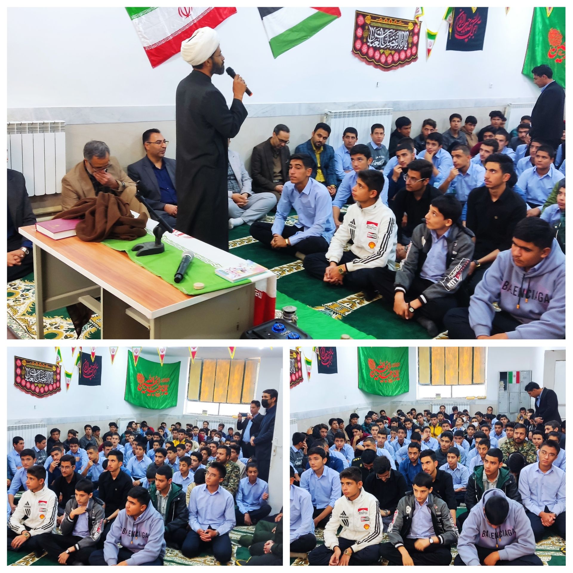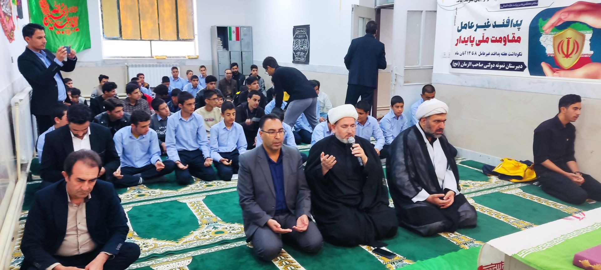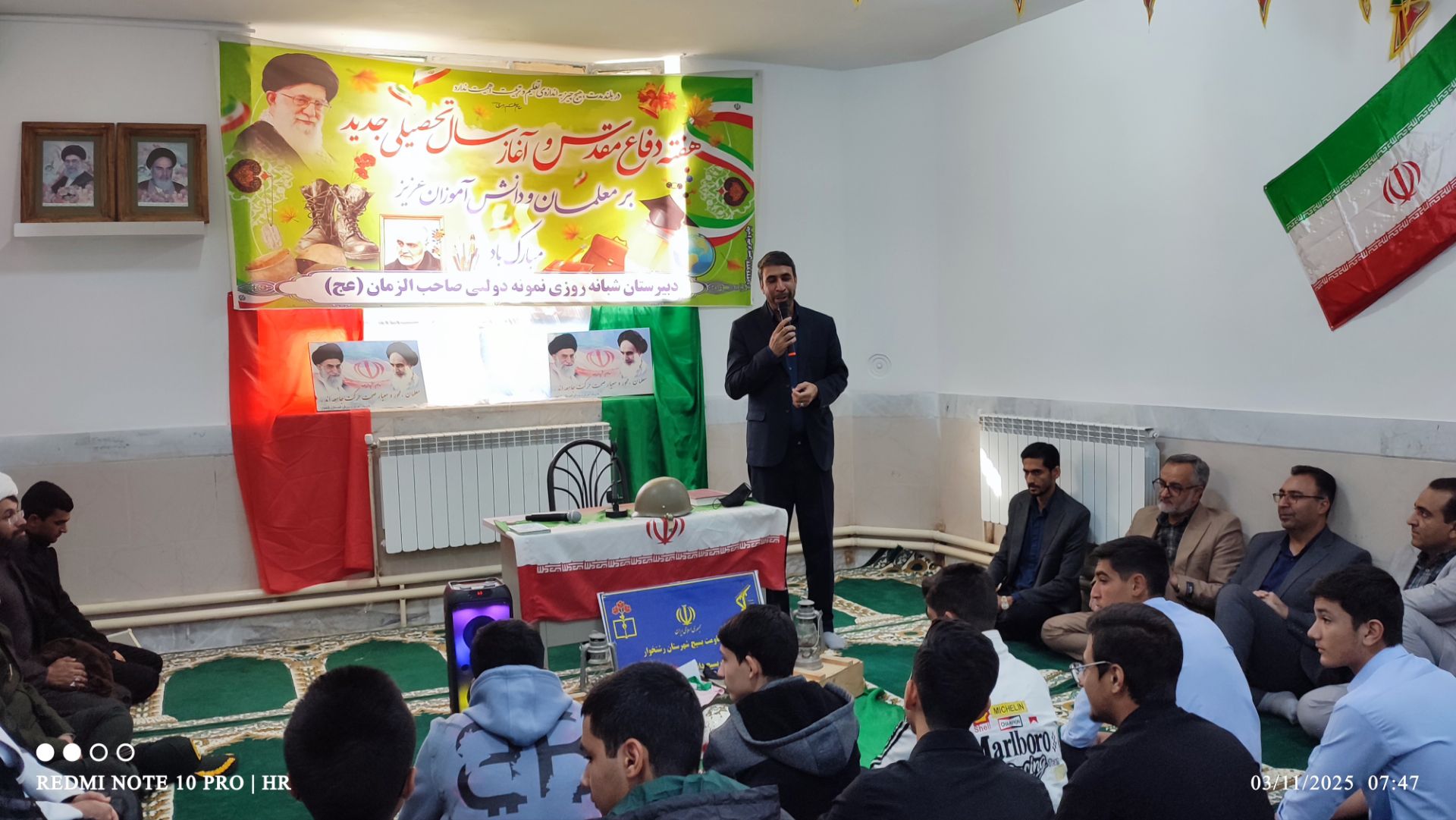همزمان با هفته بسیج دانش آموزی و در آستانه روز دانش آموز و آغاز دهه فاطمیه ، صبح امروز قبل از شروع کلاس ها، همایش بصیرتی رهپویان ولایت با حضور امام جمعه محترم ، مدیریت محترم آموزش و پرورش، ریاست محترم دادگستری، فرماندهان محترم نظامی و انتظامی، روسای ادارات، کارکنان محترم آموزش و پرورش، رئیس دفتر نماینده شهرستان ، فرمانده بسیج دانش آموزی، همکاران و دانش آموزان قبل از شروع کلاس ها از ساعت۶تا۸صبح برگزار شد. در این مراسم ضمن خیر مقدم مدیریت دبیرستان، مسوول فرهنگی ـ عقیدتی سپاه ناحیه شهرستان به ایراد سخنرانی پرداختند و در پایان از دانش آموزان و مهمانان با صبحانه فاطمی پذیرایی شد.