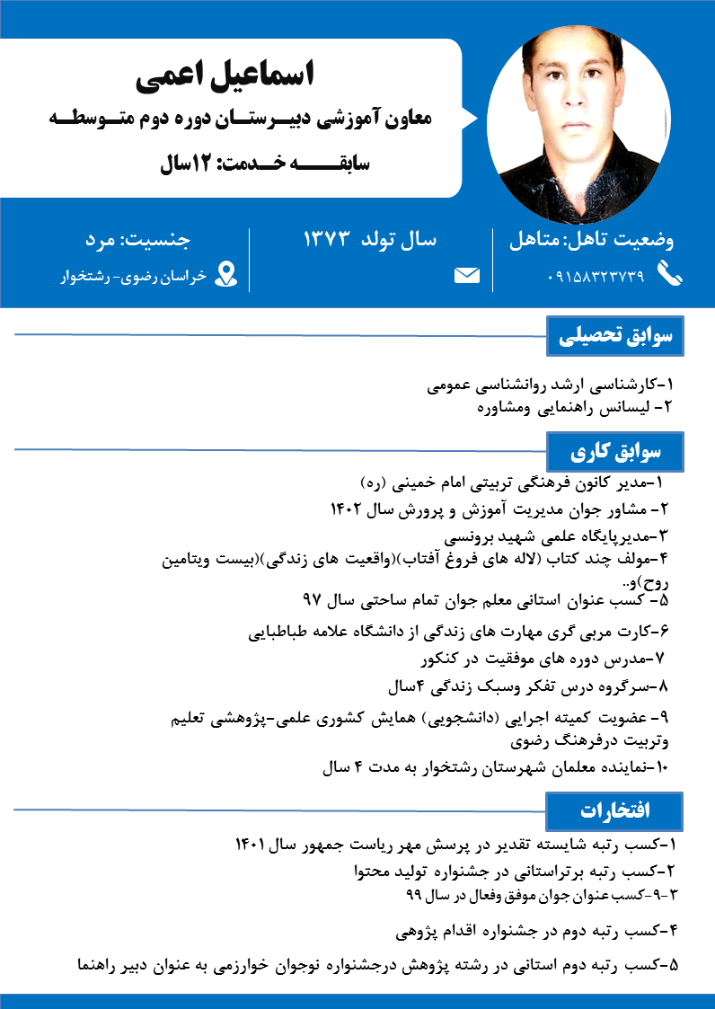 جهت آشنایی با سوابق آموزشی و تجربیات اجرایی همکاران بر روی